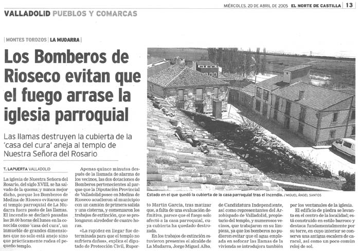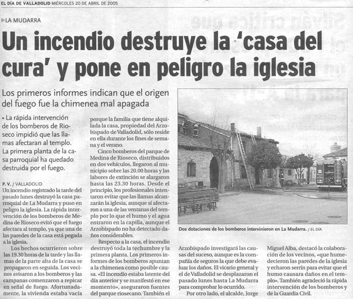Sobre las 7:30 de la tarde se inició un incendio que arrasó la "casa del cura" y afectó a una parte de la iglesia. Quedó extinguido a las 11:30 de la noche.